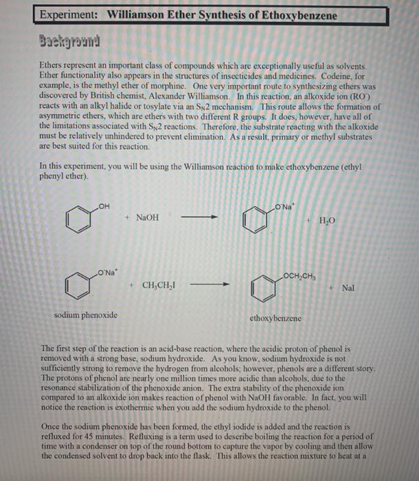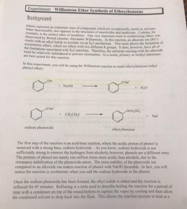 Solved Experiment Williamson Ether Synthesis Of Chegg Com