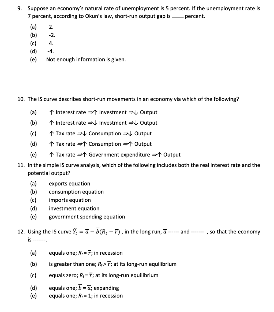Solved 9 Suppose An Economy S Natural Rate Of Unemployment Chegg Com